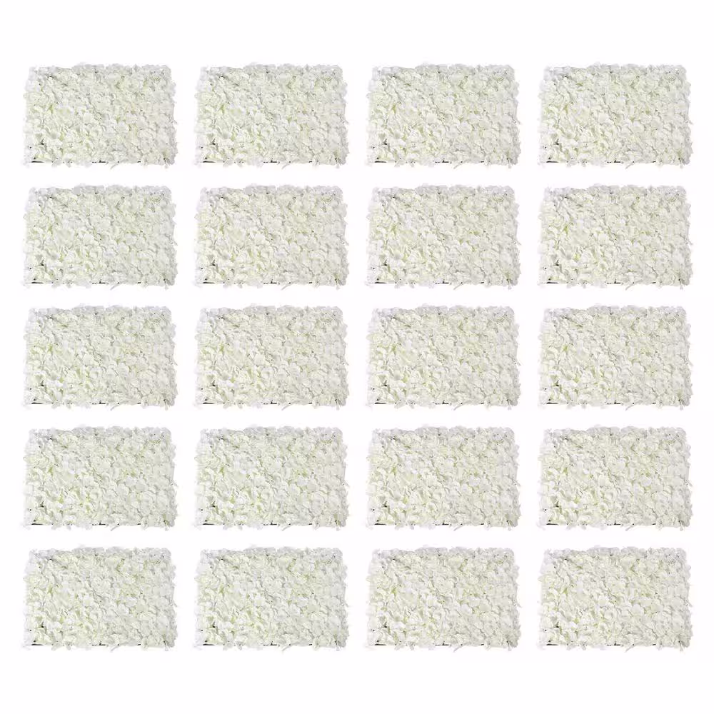 None 23 .6 in. x 15.7 in. Miky-white Artificial Floral Wall Panel Silk Fabric Hydrangea Backgdrop Decor (20-pieces)
