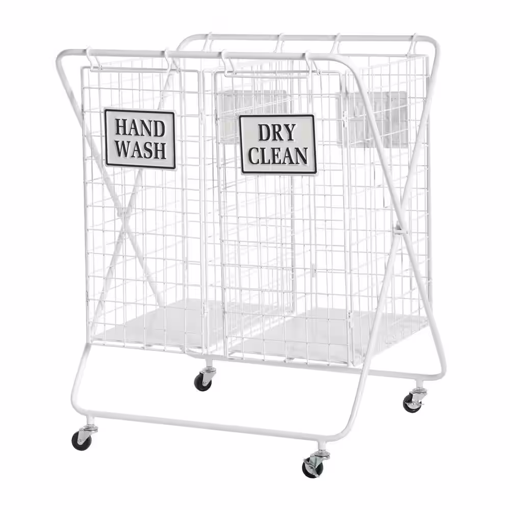 Litton Lane 32 in. White Metal Farmhouse Storage Basket