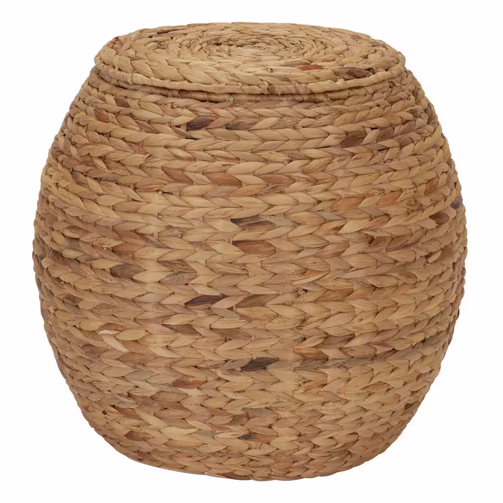 HOUSEHOLD ESSENTIALS Large Round Wicker Basket Side Table