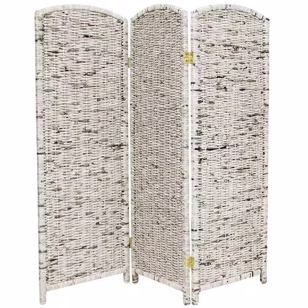 Oriental Furniture 4 ft. Short Recycled Newspaper Folding Screen - 3 Panels