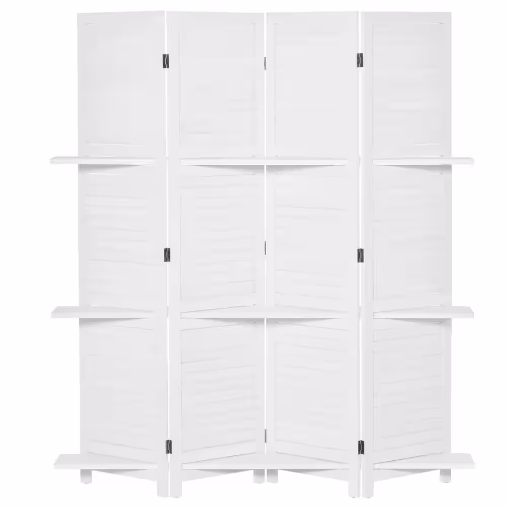 HOMCOM 5.6 ft. 4-Panel Wood Room Divider Folding Privacy Screen Panels with 3-Shelves for Indoor Bedroom Office, Blinds Style