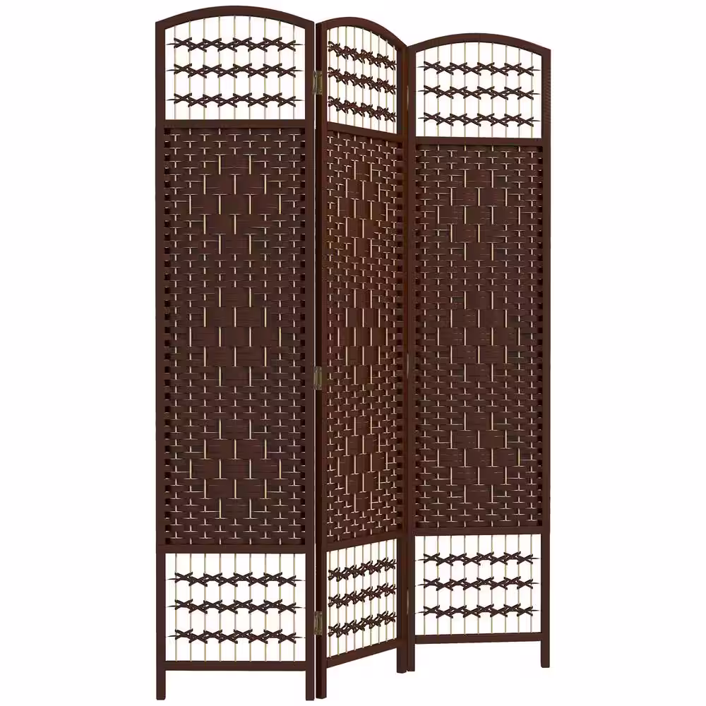 HOMCOM 3-Panel Room Divider, Folding Privacy Screen, 5.6 in. Room Separator, Fiber Freestanding Partition Wall Divider, Brown