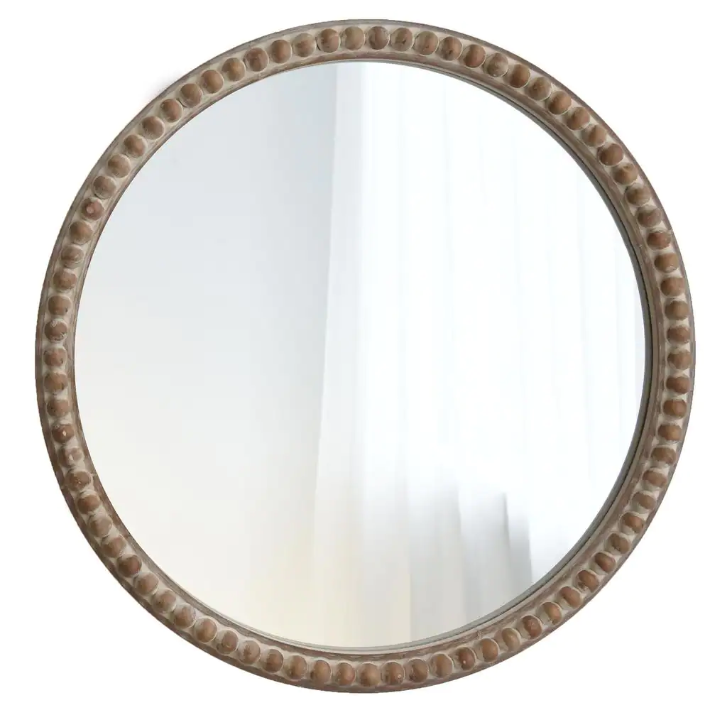 None 30 in. W x 30 in. H Distressed Brown Round Wood Frame Accent Mirror