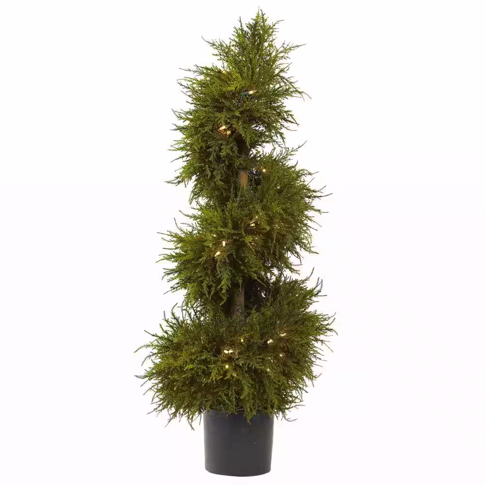 Nearly Natural 43 in. Artificial Cedar Spiral Topiary with Lights