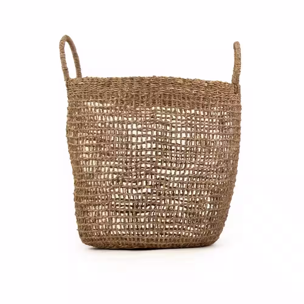 Zentique Cylindrical Sparsely Hand Woven Seagrass Large Basket with Handles