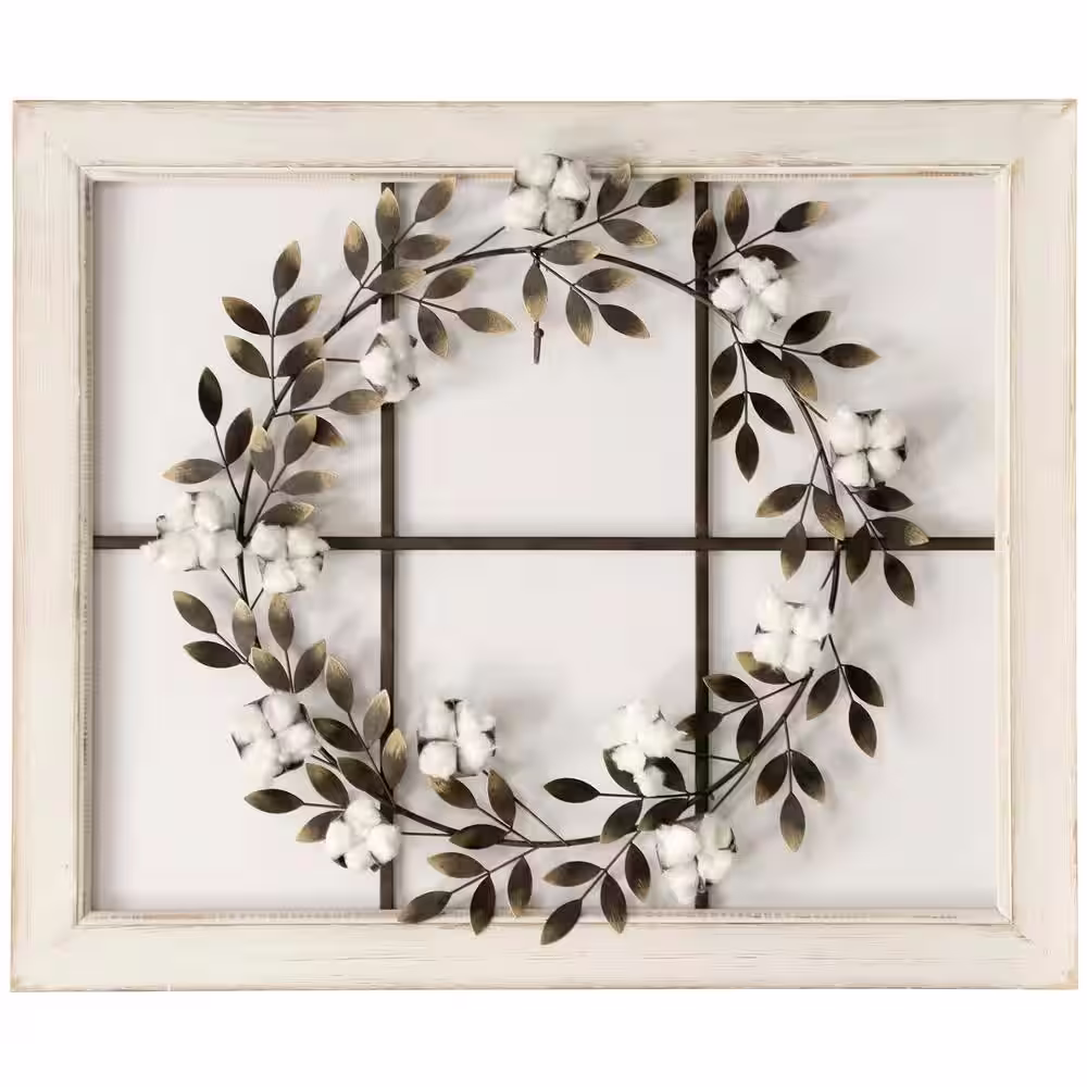 StyleCraft Cotton Wreath White Wood Framed Wall Art