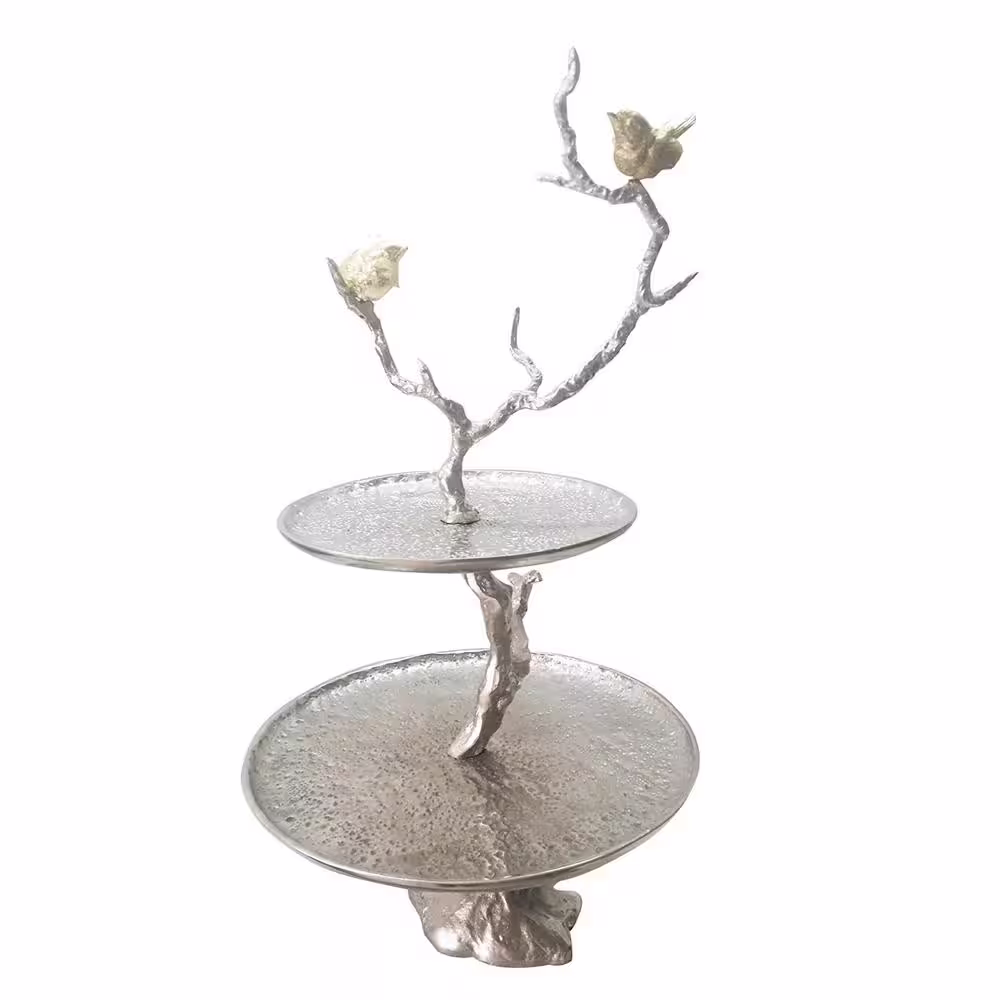 Benjara Impressively Designed Silver Iron Branch 2 Tiered Tray