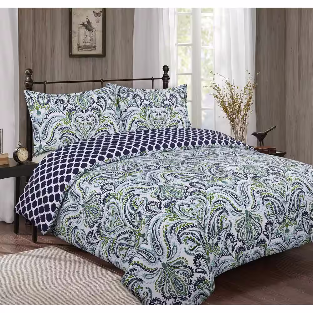 Nouvelle Home Provence Paisley 3-Piece Blue and White Cotton Full/Queen Comforter Set