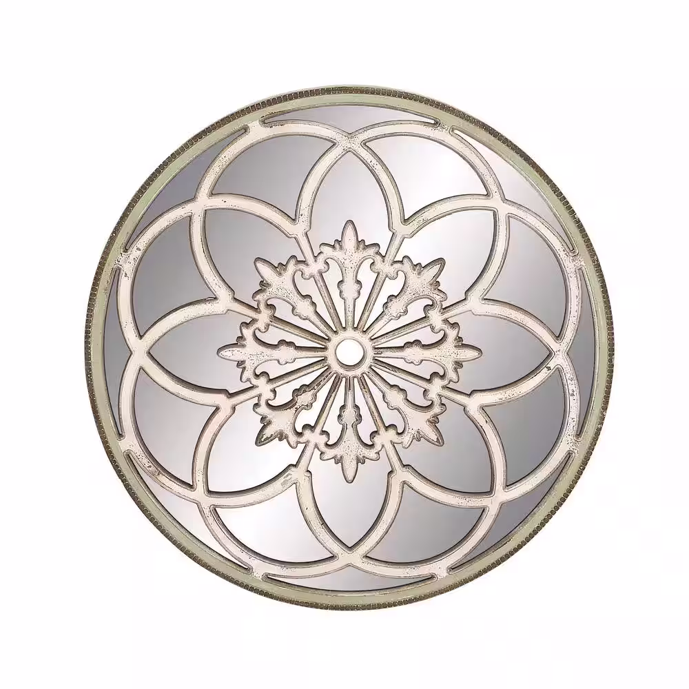 Litton Lane 40 in. x 40 in. Medallion Round Framed White Floral Wall Mirror