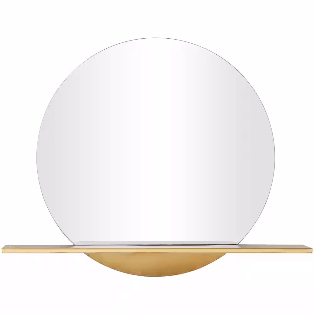 Litton Lane 28 in. x 35 in. 1 Shelf Round Frameless Gold Wall Mirror