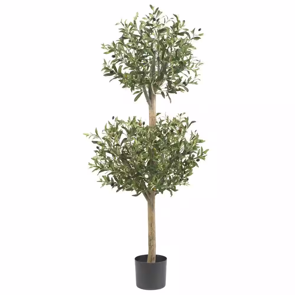 Nearly Natural 4.5 ft. Artificial Green Olive Double Topiary Silk Tree