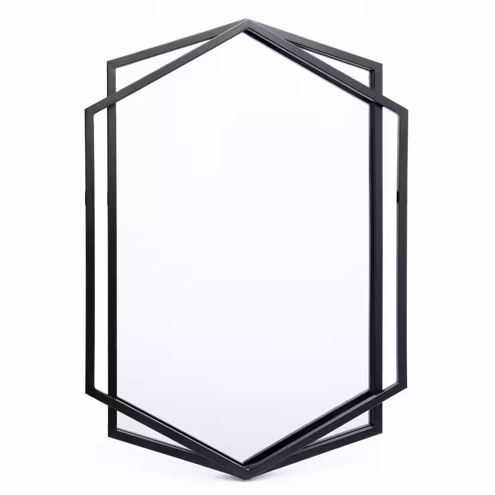 LuxenHome 22 in. W x 31.75 in. H Metal Black Hexagon Frame Art Deco Wall Accent Mirror