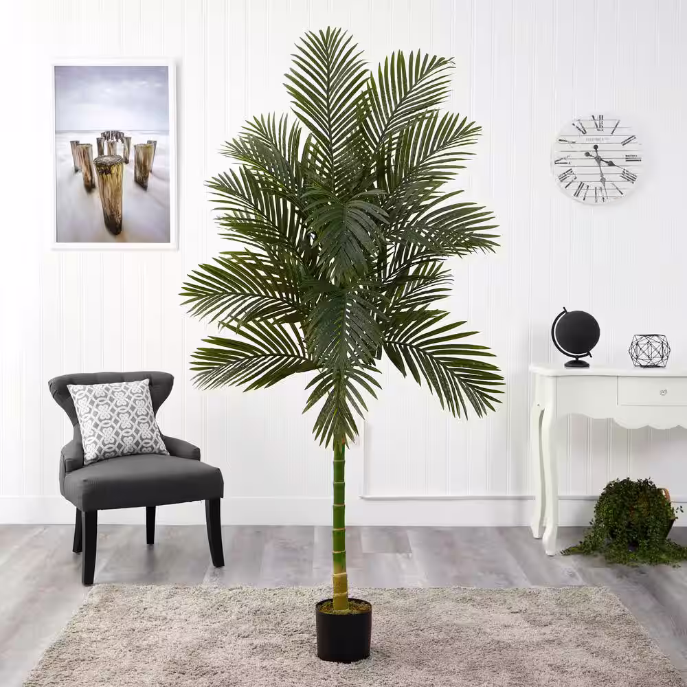 Nearly Natural 7 ft. Artificial Single Stalk Golden Cane Palm Tree