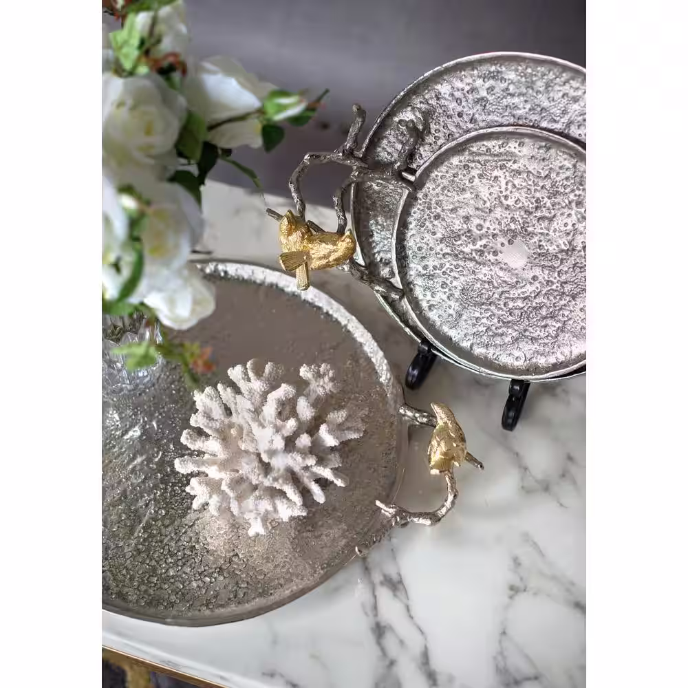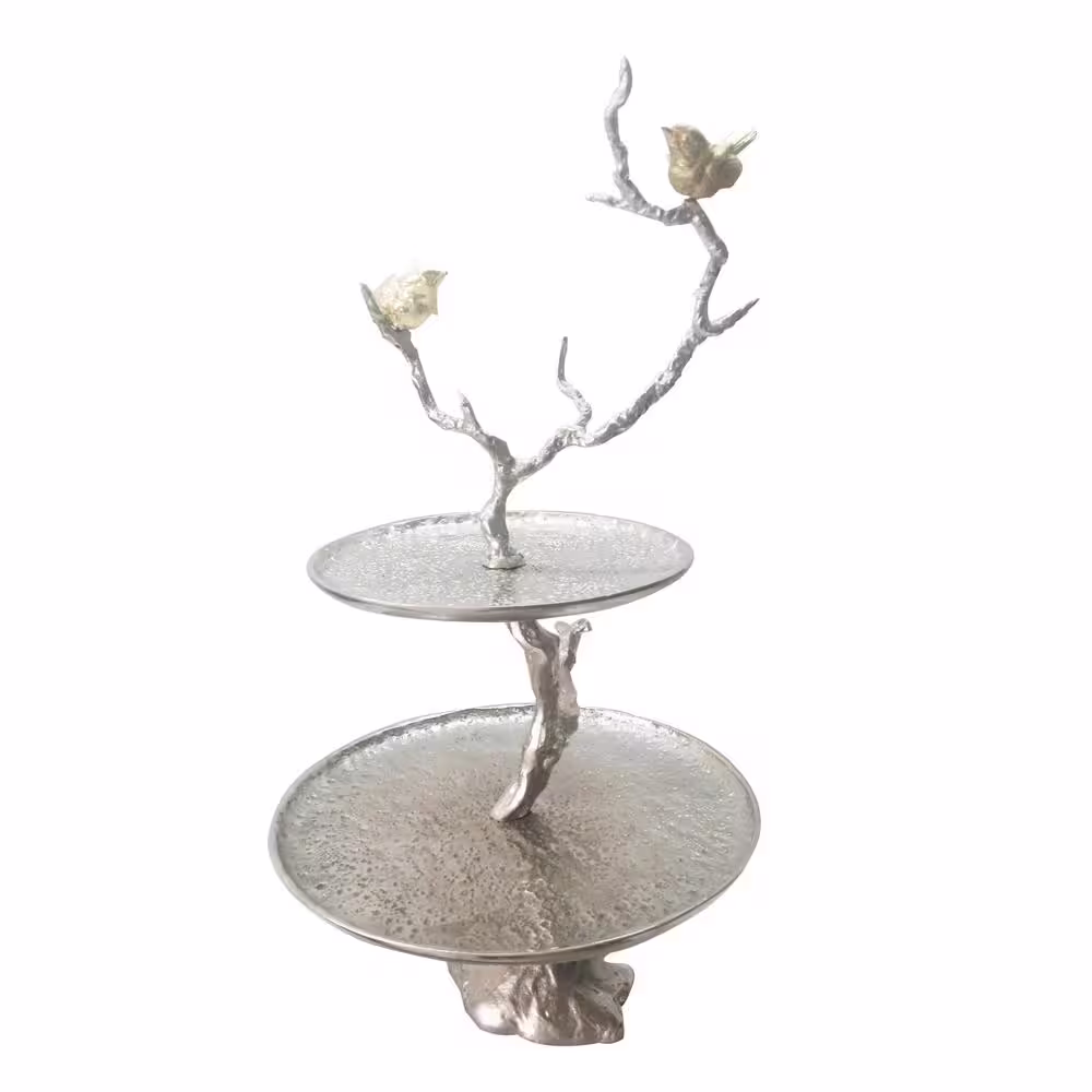 A & B Home Iron Branch Two-Tiered Silver Tray