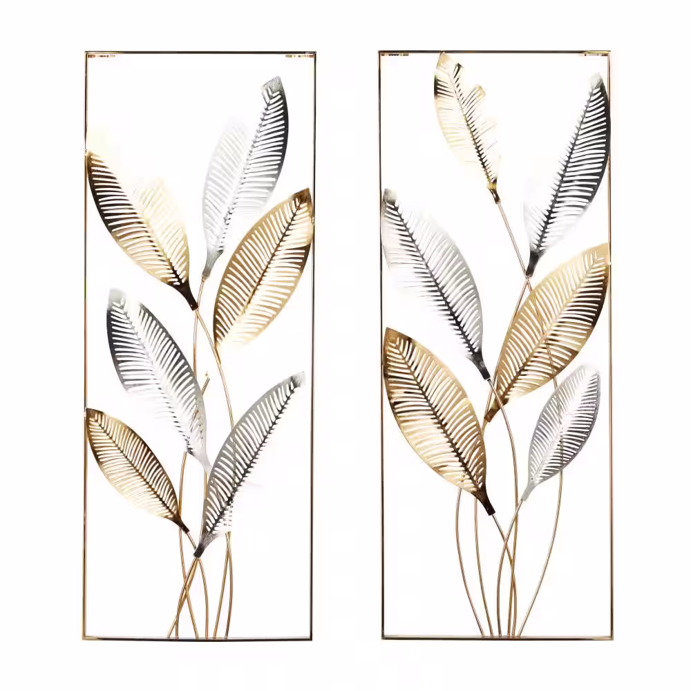 Litton Lane Metal Gold Metallic Cutout Leaf Wall Decor with Silver Accents (Set of 2)