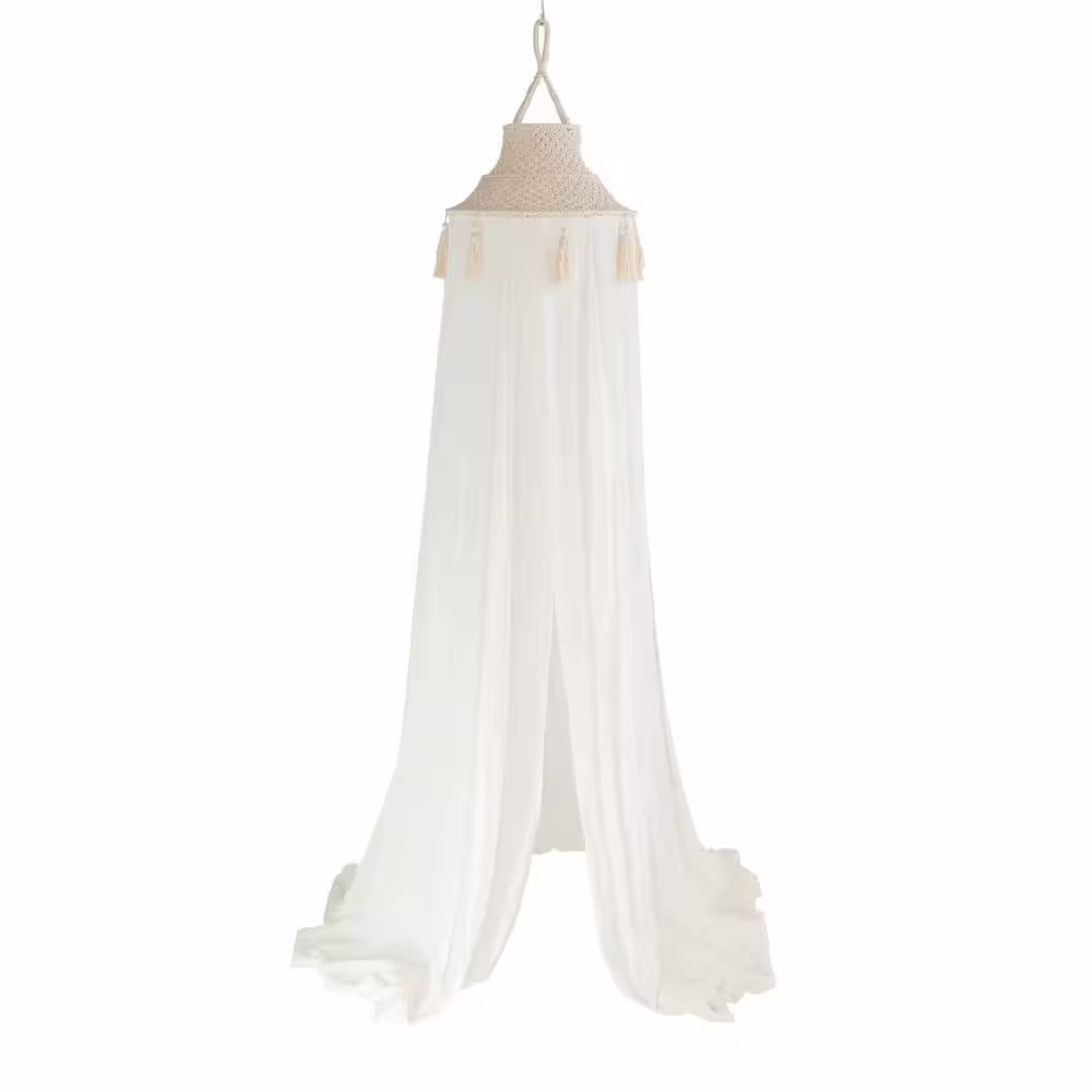 Storied Home White Cotton Macrame Canopy