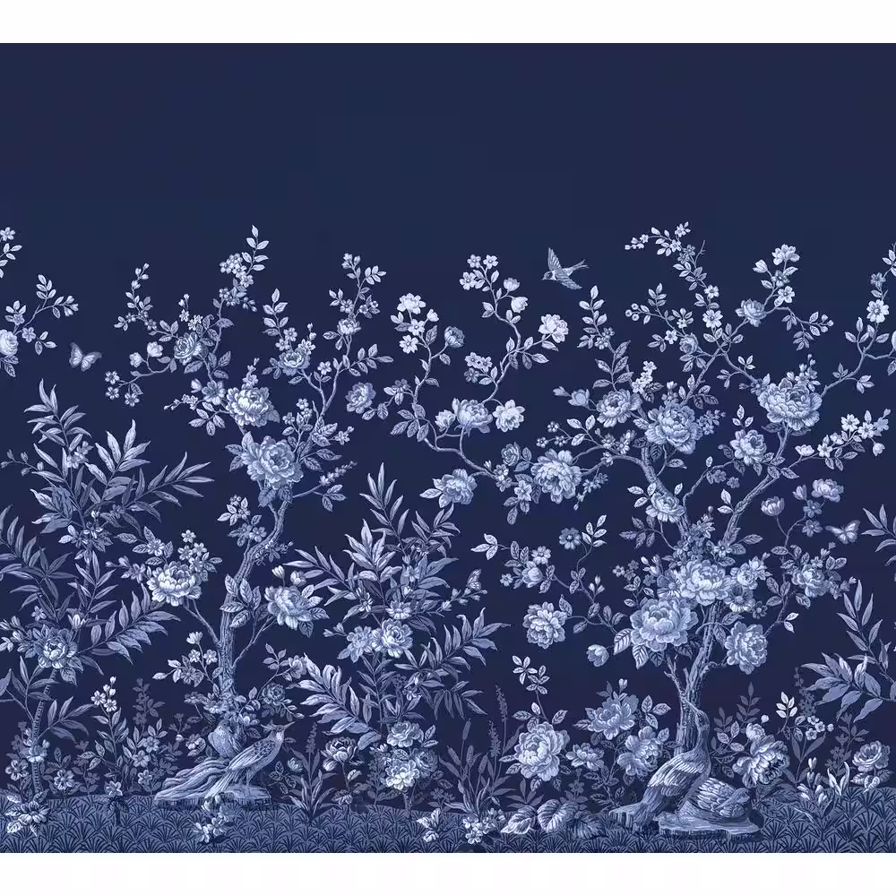 None Twilight Chinoiserie Blue Midnight Blue Flowers Wall Mural
