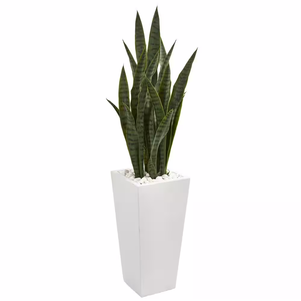 Nearly Natural 4 ft. Sansevieria Artificial Plant in White Tower Planter