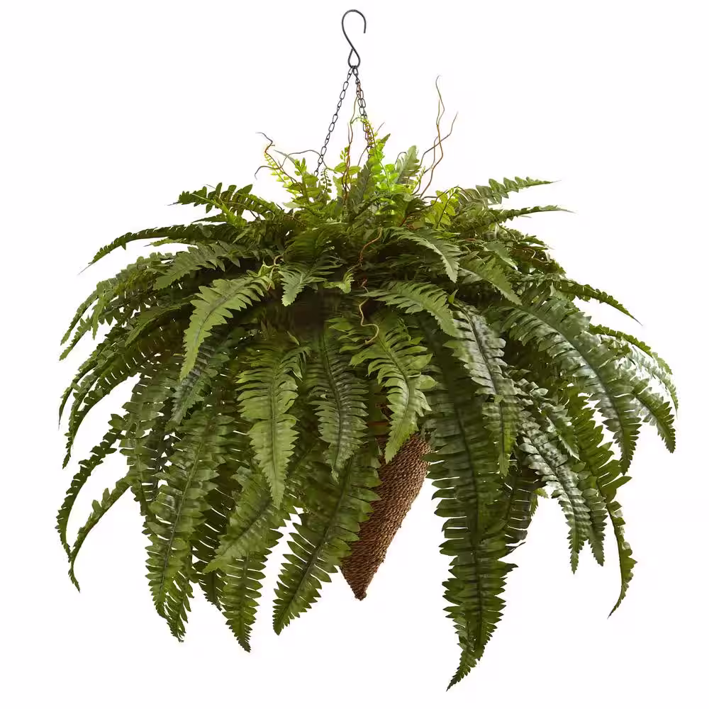 Nearly Natural Artificial Giant Boston Fern with Cone Hanging Basket