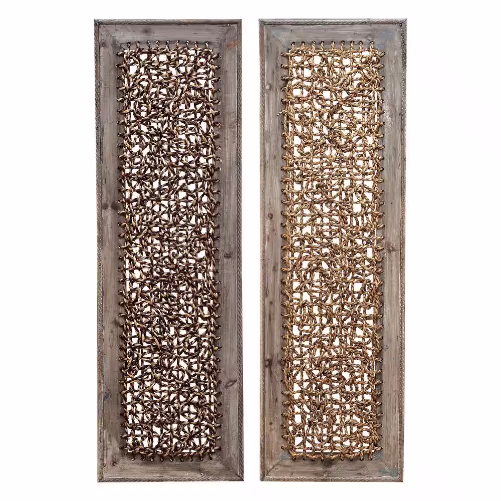 Litton Lane Wood Brown Woven Seagrass Abstract Wall Decor (Set of 2)