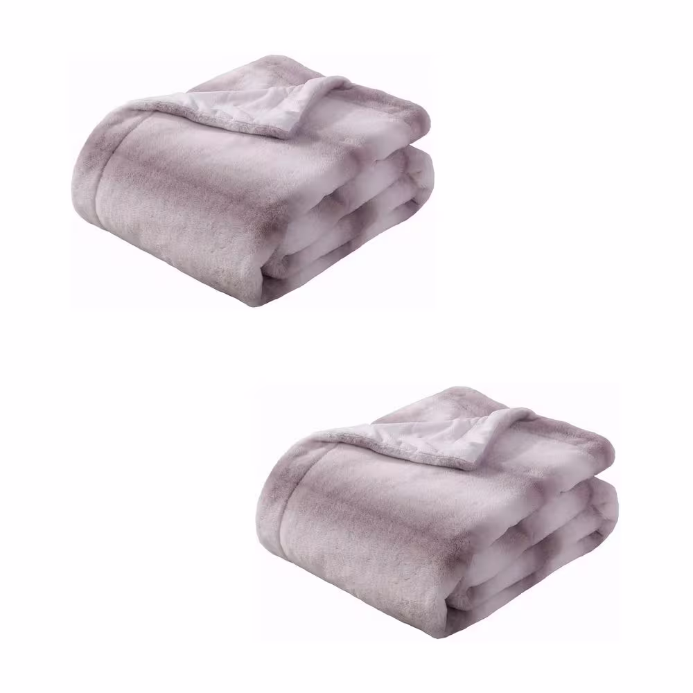 None Geometric Gray Flannel Sherpa 50 in. x 60 in. Throw Bed Blanket (2-Pack)
