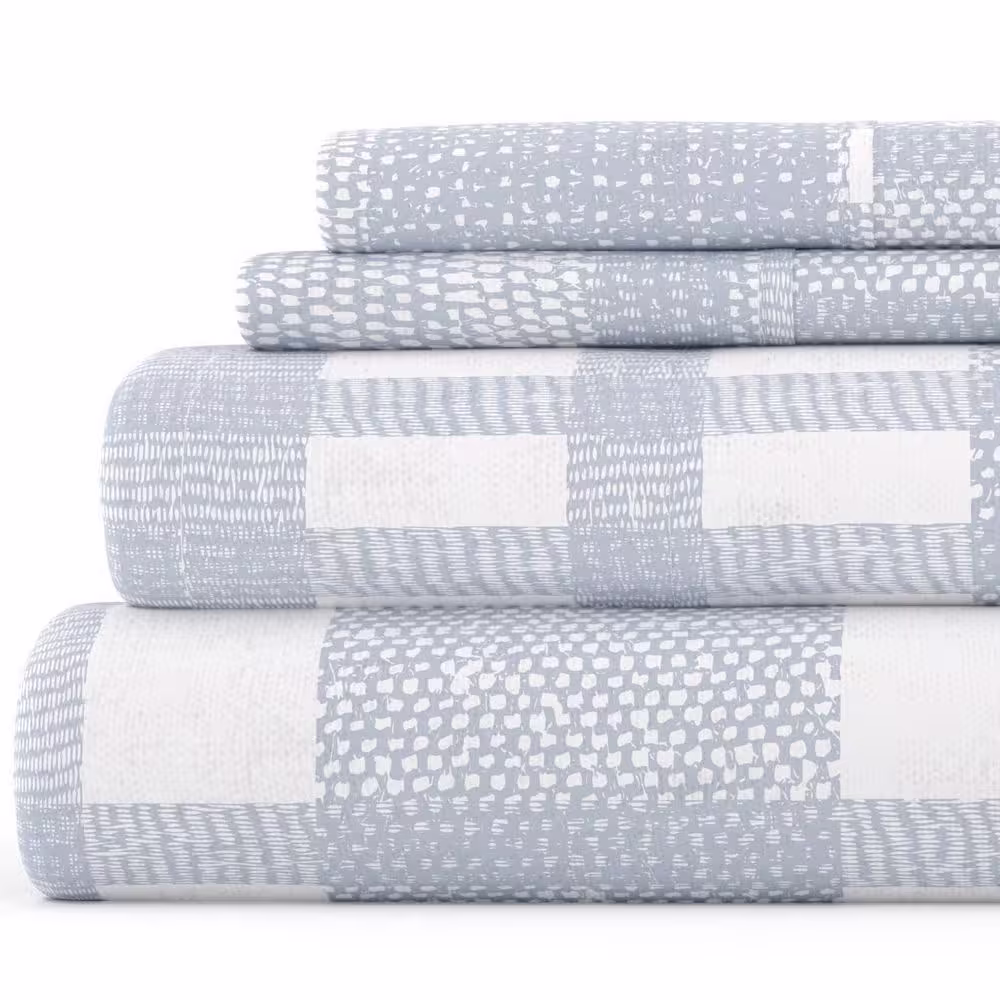 Becky Cameron Premium Light Blue Woven 4-Piece Flannel King Bed Sheet Set
