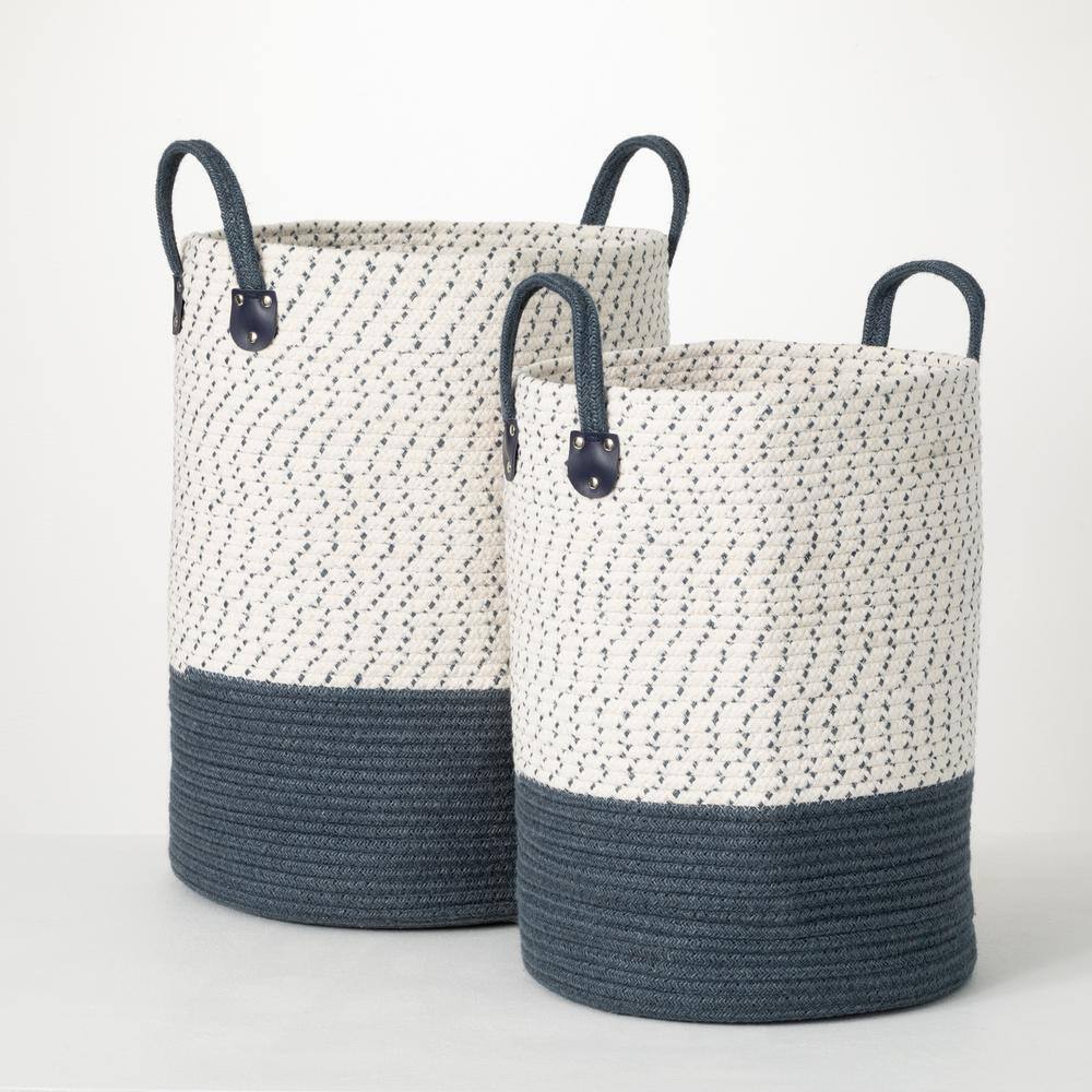 SULLIVANS 21" and 23" Indigo and White Fabric Basket (Set of 2)