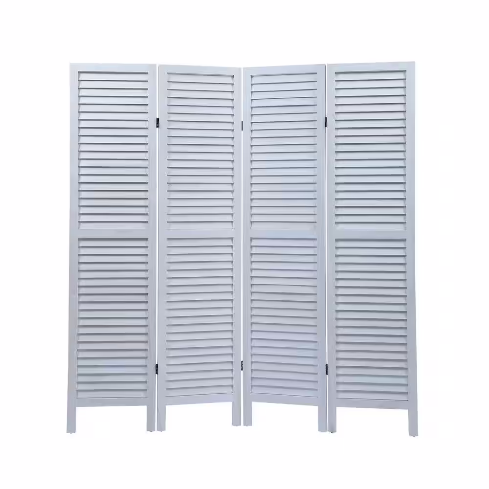 None 4-Panel White Wood Room Divider Louver Partition Screen, 5.6 ft. Tall Folding Privacy Screen for Home Office
