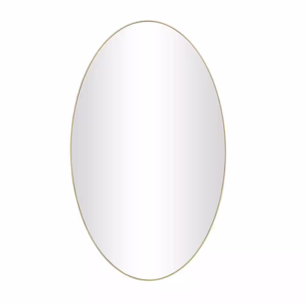 Litton Lane 40 in. x 24 in. Oval Round Framed Gold Wall Mirror with Thin Minimalistic Frame