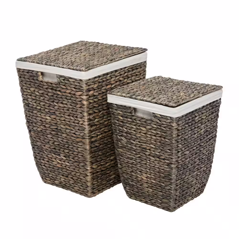 Litton Lane Seagrass Handmade Storage Basket with Liner and Matching Tops (Set of 2)