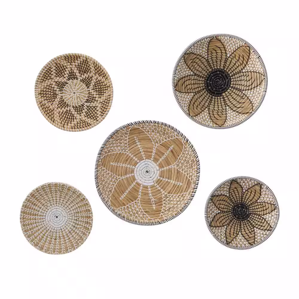 Litton Lane Seagrass Brown Handmade Basket Plate Wall Decor (Set of 5)