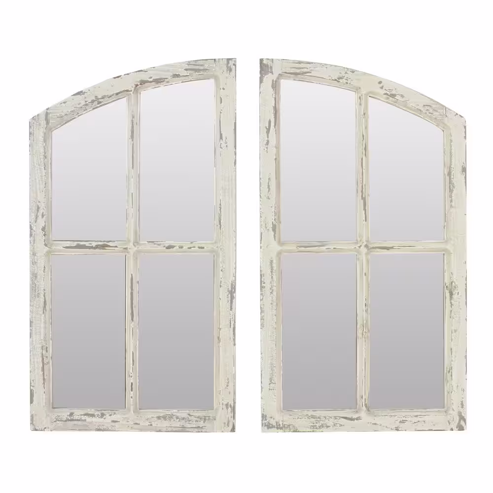 Aspire Home Accents Medium Arch Distressed Off-White Finish Hooks Pueblo Mirror (27 in. H x 15 in. W)