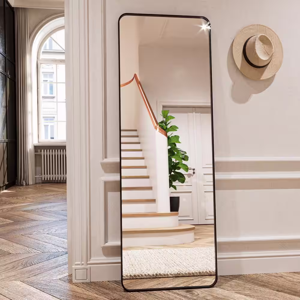 XRAMFY 21 in. W x 64 in. H Rectangular Black Aluminum Alloy Framed Rounded Full Length Mirror Standing Floor Mirror