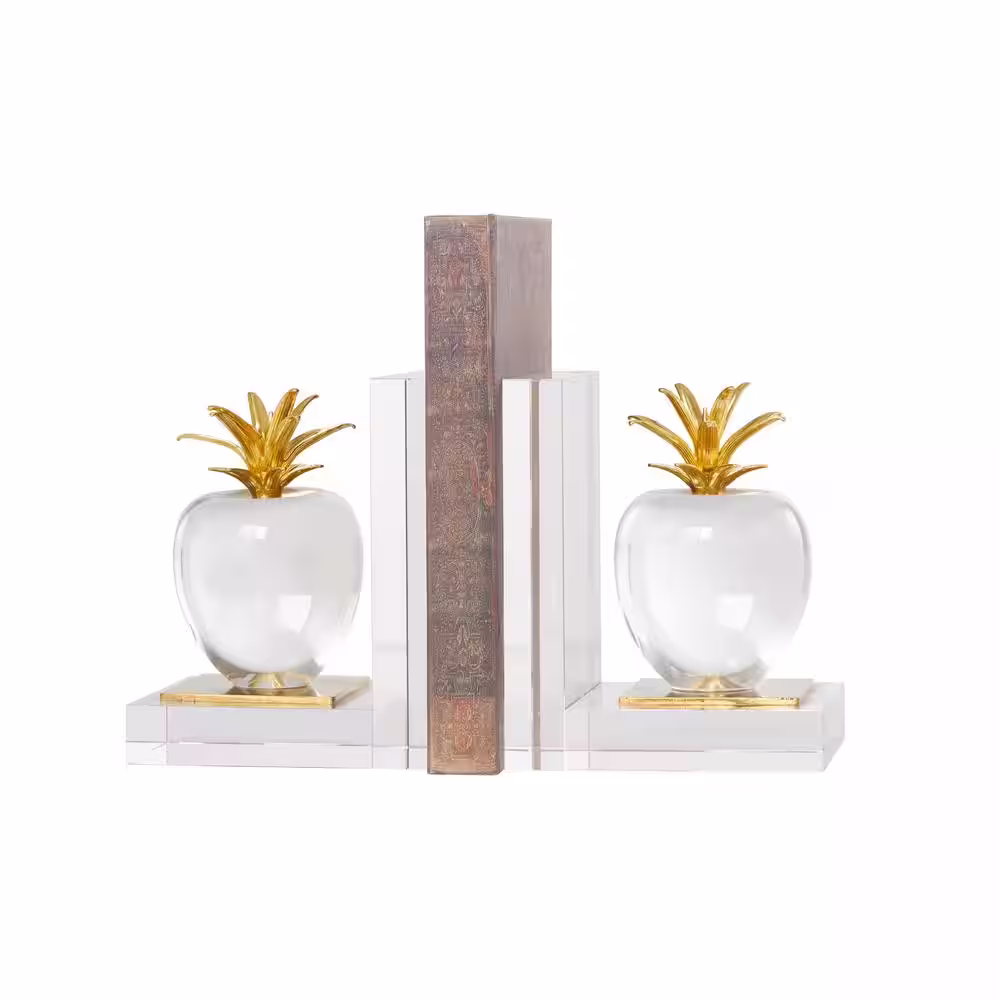 Litton Lane Clear Crystal Apple Fruit Bookends with Gold Leaves (Set of 2)