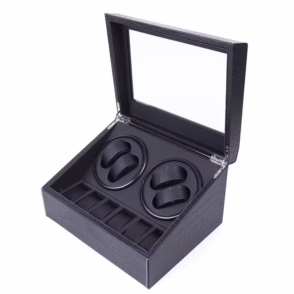 YIYIBYUS Black Crocodile Pattern 2 Motor 4+6 Automatic Watch Winder Display Case