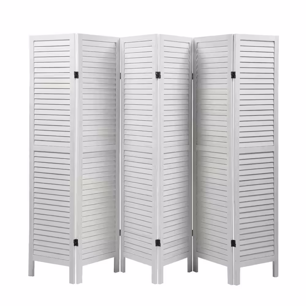 None Old white 6-Panel Sycamore Wood Panel Screen Folding Louvered Room Divider