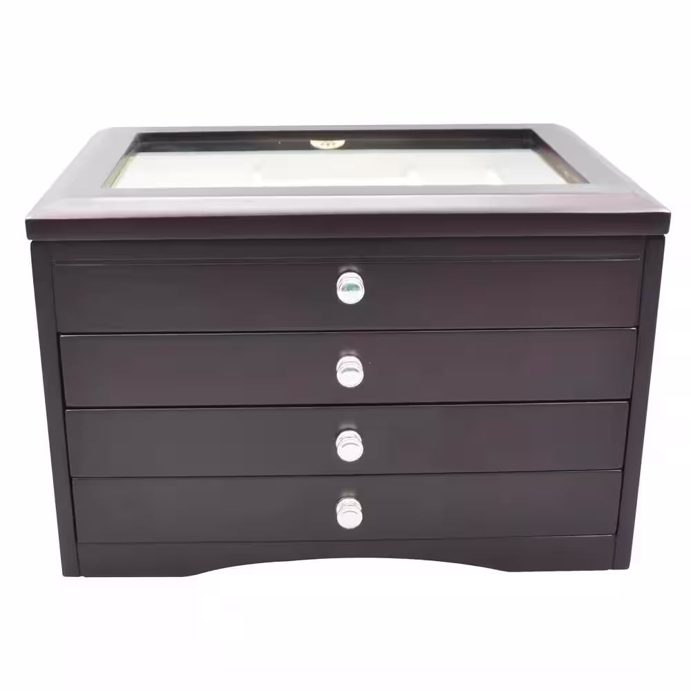 Mercana Stotonic Brown Solid Wood with Glass Top Rectangular Serving Tray