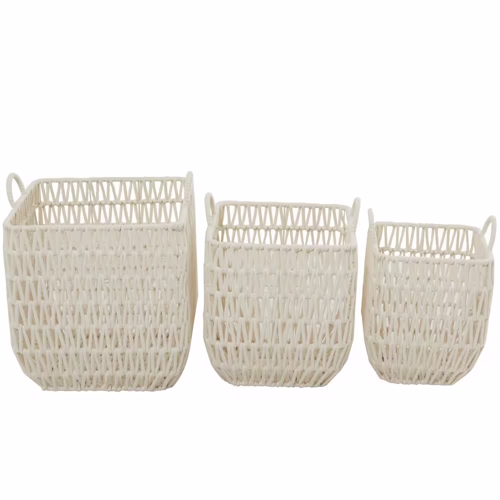 Litton Lane Cotton Handmade Storage Basket with Handles (Set of 3)