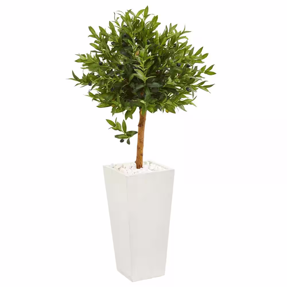 Nearly Natural Indoor/Outdoor 4 ft. White Planter Artificial Olive Topiary Tree