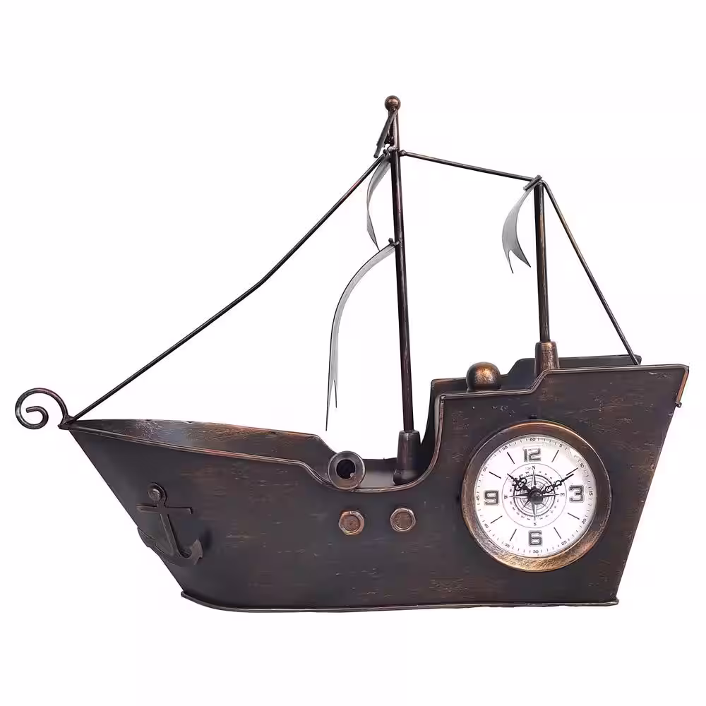 Peterson Artwares Sailing Ship Metal Table Clock-Bronze Copper