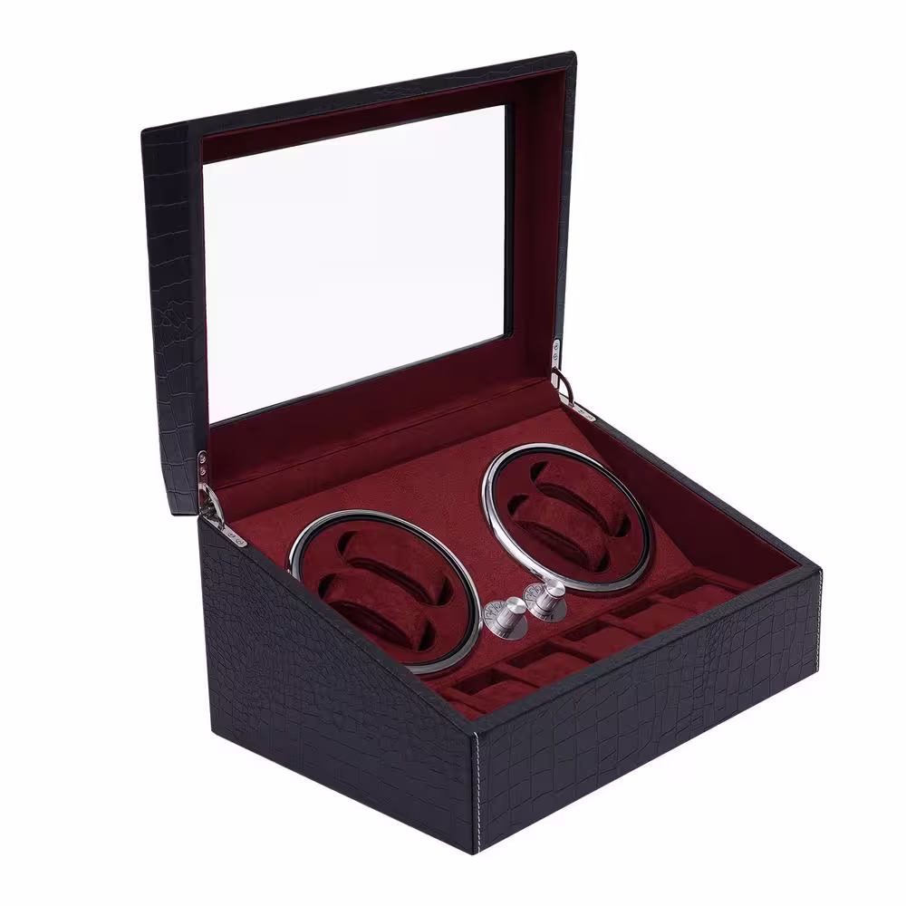 None Black PU Automatic Watch Winder with Extra 6 Watch Storages LED Illumination Silent Motor