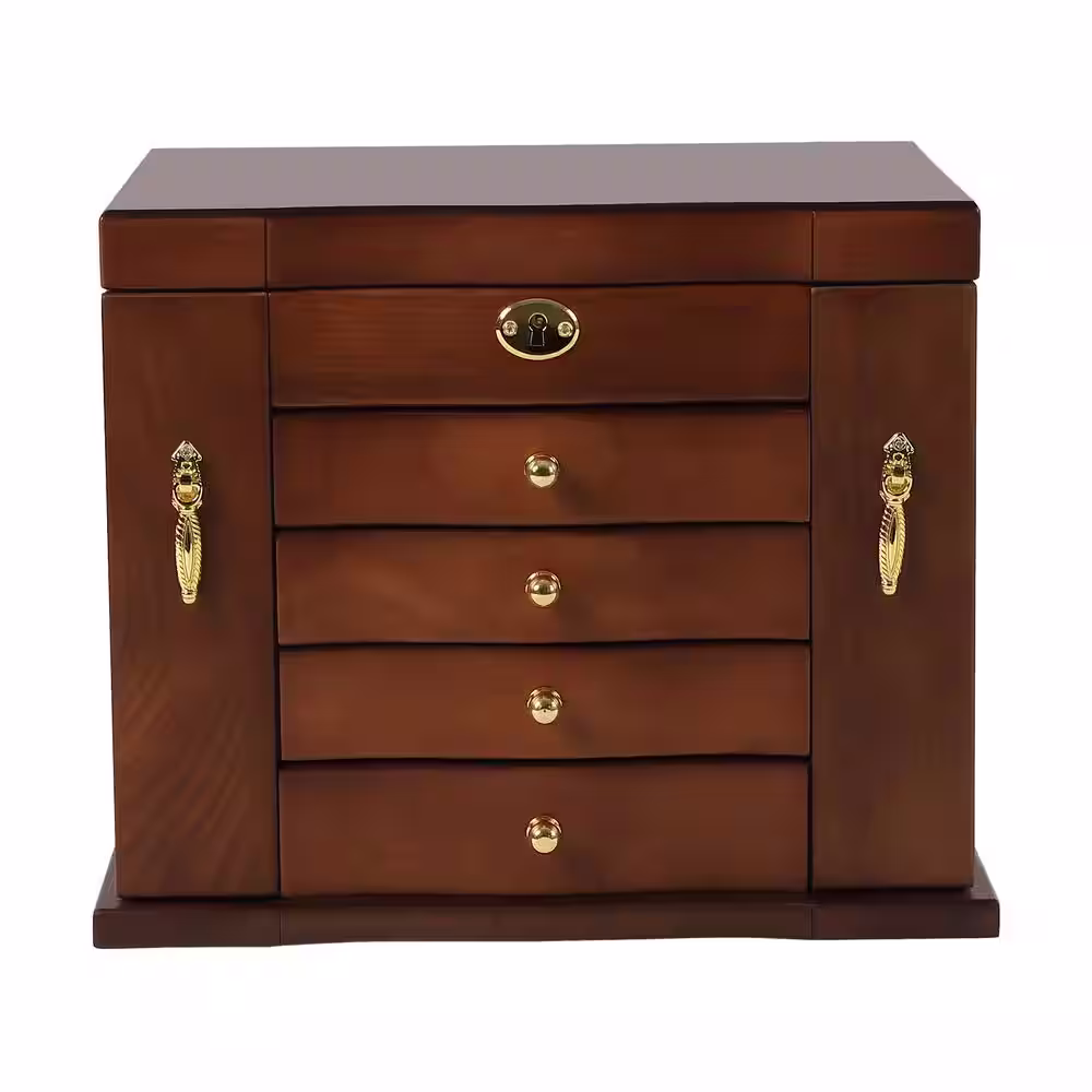 None 5-Tier Vintage Style Rectangular Brown Wooden Jewelry Box with Combo Lock and Mirror