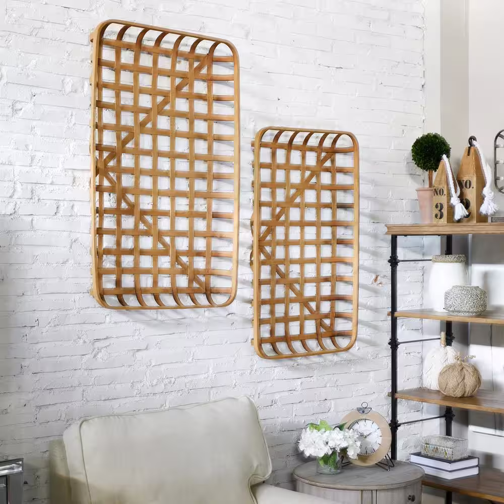 None Larkspur Paracel Brown Bamboo Decorative Trays (Set of 2)