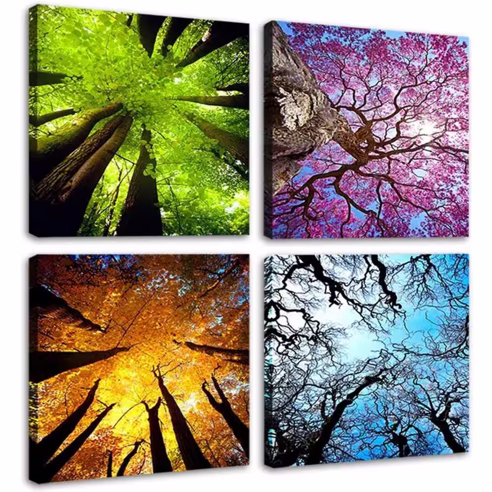 Tatahance Four Seasons Landscape Color Tree Painting Wall Mural Set of 4