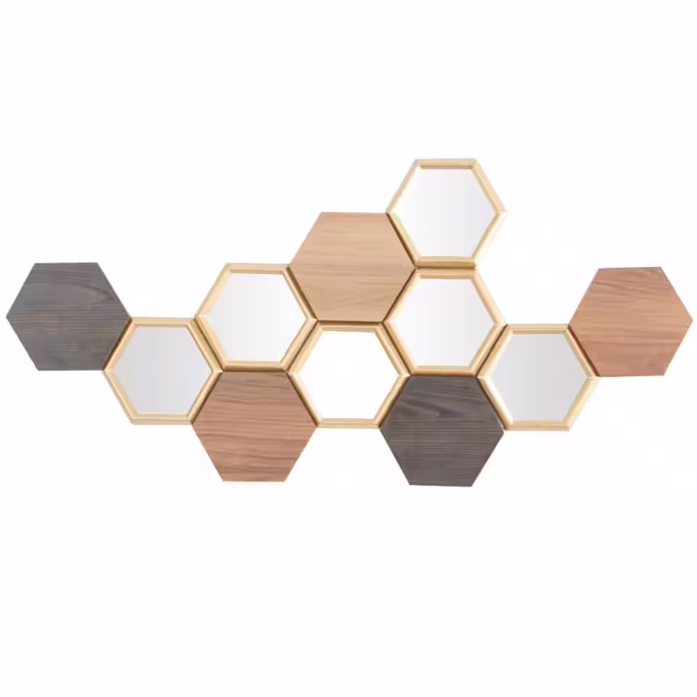CosmoLiving by Cosmopolitan Wood Brown Honeycomb Geometric Wall Decor with Mirrors