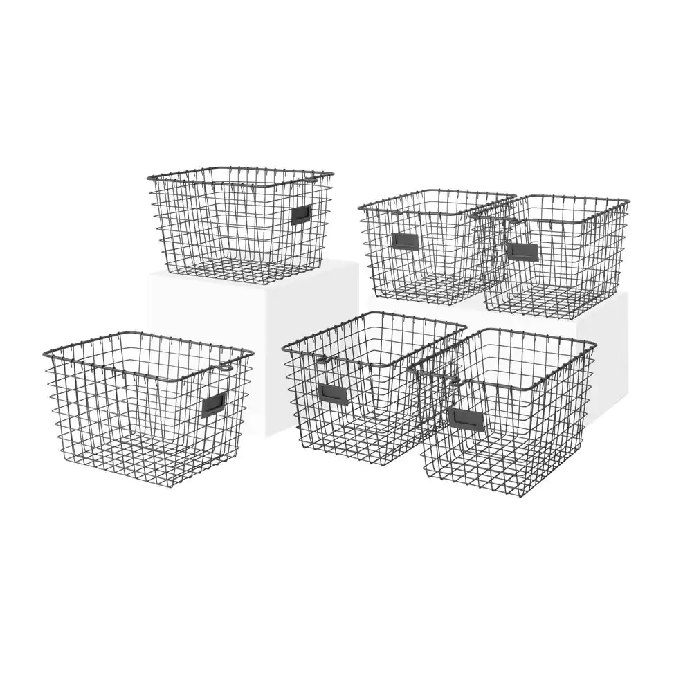 Spectrum 13 in. D x 9 in. W x 8 in. H Industrial Gray Small Steel Wire Storage Bin Basket Organizer (6-Pack)