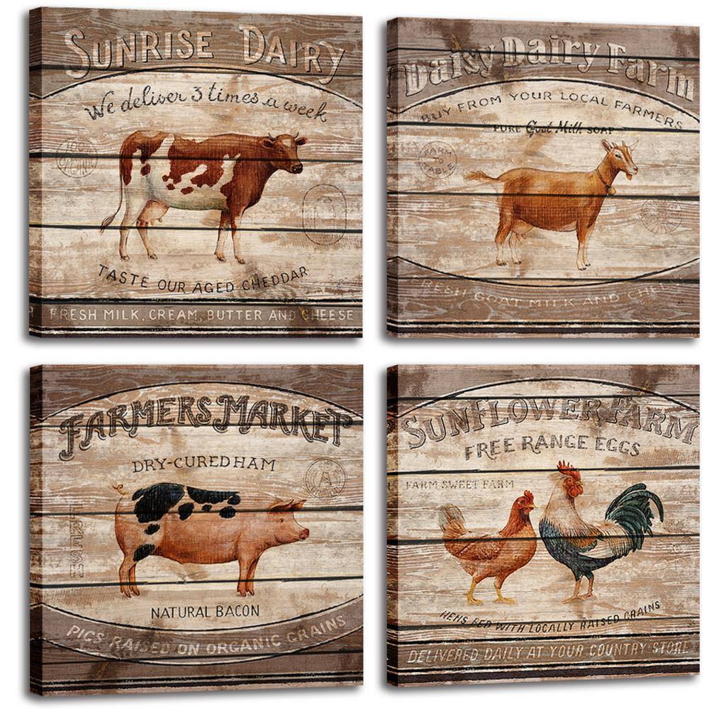 Tatahance Retro Animal & Farm Canvas Art Wall Mural Set of 4