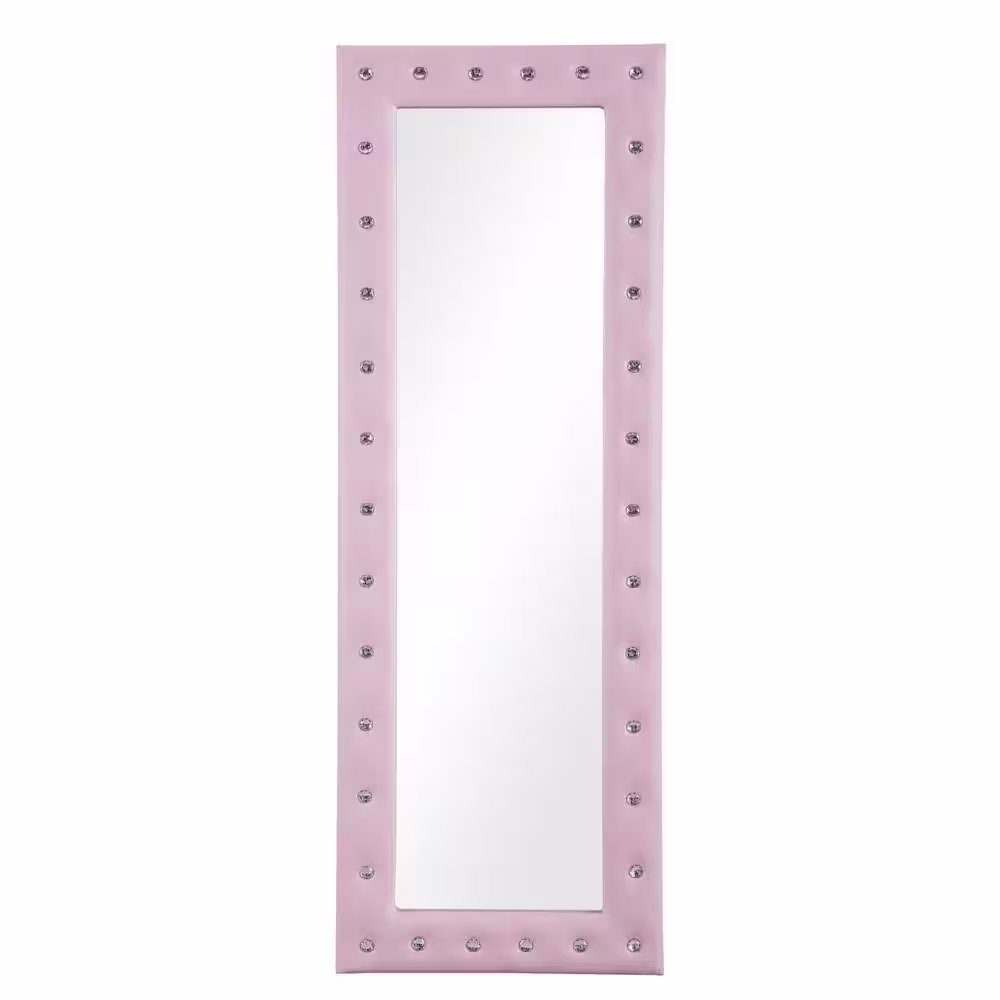 HOMESTOCK 22 in. W x 63 in. H Modern Crystal Tufted Rectangle Framed Pink Leaning Mirror
