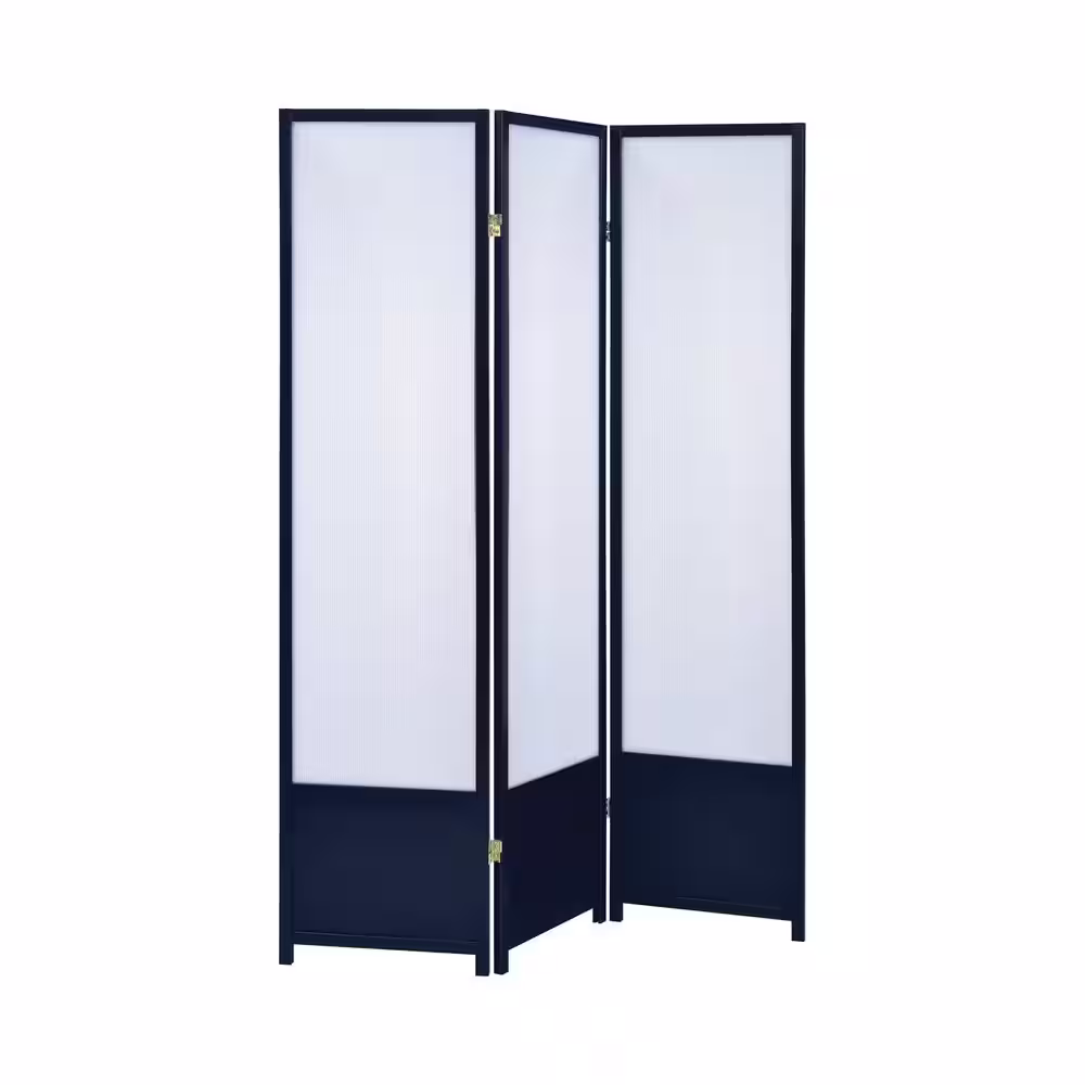 Coaster Home Furnishings Black 3-Panel Folding Floor Screen with Translucent Inserts