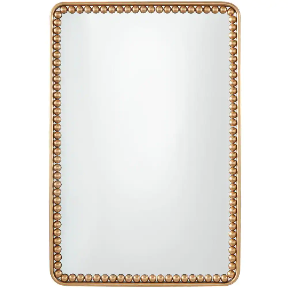 Litton Lane 36 in. x 24 in. Rectangle Framed Gold Wall Mirror with Beaded Detailing
